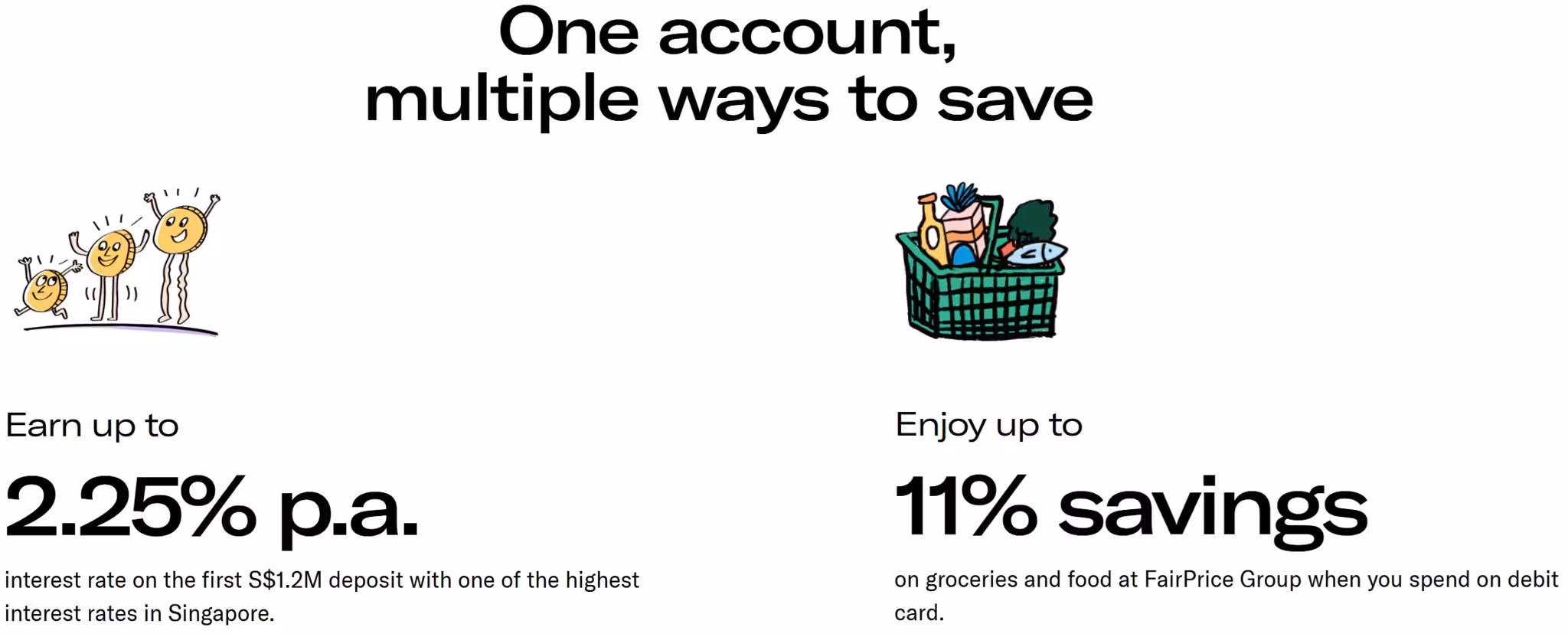 Best For: Customers comfortable with digital banking and looking for an account that offers good returns on higher balances, coupled with benefits for FairPrice Group purchases.