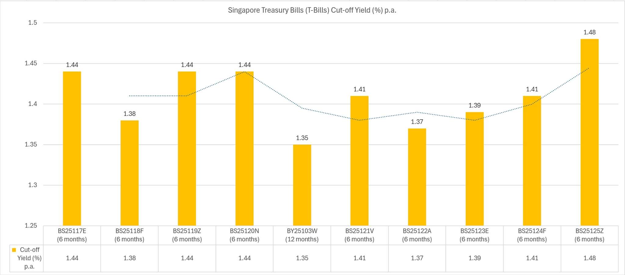 The Singapore 6‑Month T‑bill BS25125Z stands out as one of the more attractive short‑term government securities issued in recent months. With a cut‑off yield of 1.48%, full allocation for non‑competitive bidders, and a favourable demand‑supply dynamic, this tranche offered a compelling opportunity for investors seeking stability and predictable returns.