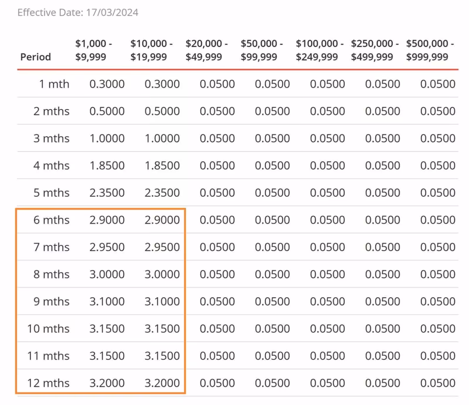 | 6 months | 3.15% | 3.20% | S$20,000 |