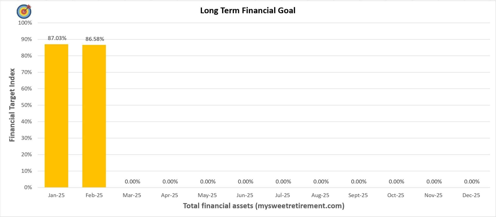 Chinese New Year is over, and I am going to report my Financial Goals Progress for February 2025. As you can see from the above, the total value of my financial assets declined slightly from 87.03% to 86.58%. The decline is attributed to the decrease in total value of my stock portfolio. I shall share more about this in the later part of this post.