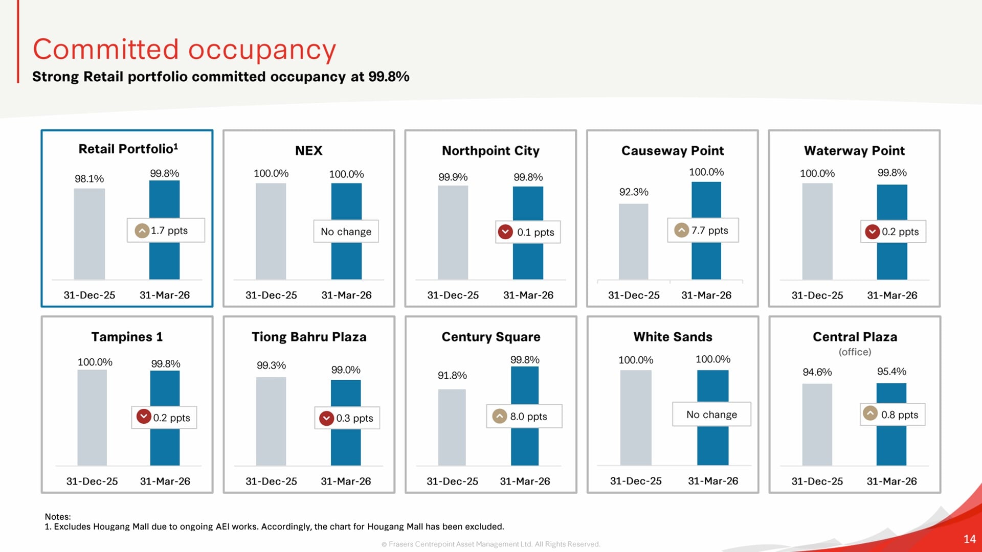 - AEIs at Hougang Mall and NEX poised to drive future income growth