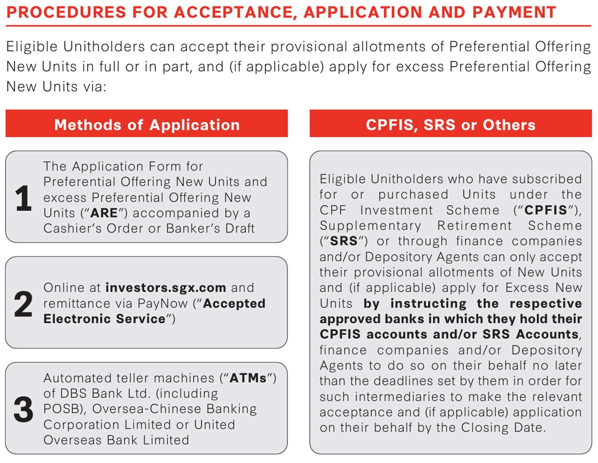 As per the screenshot I shared above, there are 3 ways you can accept the preferential offering units. You can either submit the application form accompanied by a cashier’s order or banker’s draft or accept online via Singapore Stock Exchange website. The last method is to apply via Automated Teller Machines (“ATM”) available island wide. For me, I always apply via Singapore Stock Exchange website.