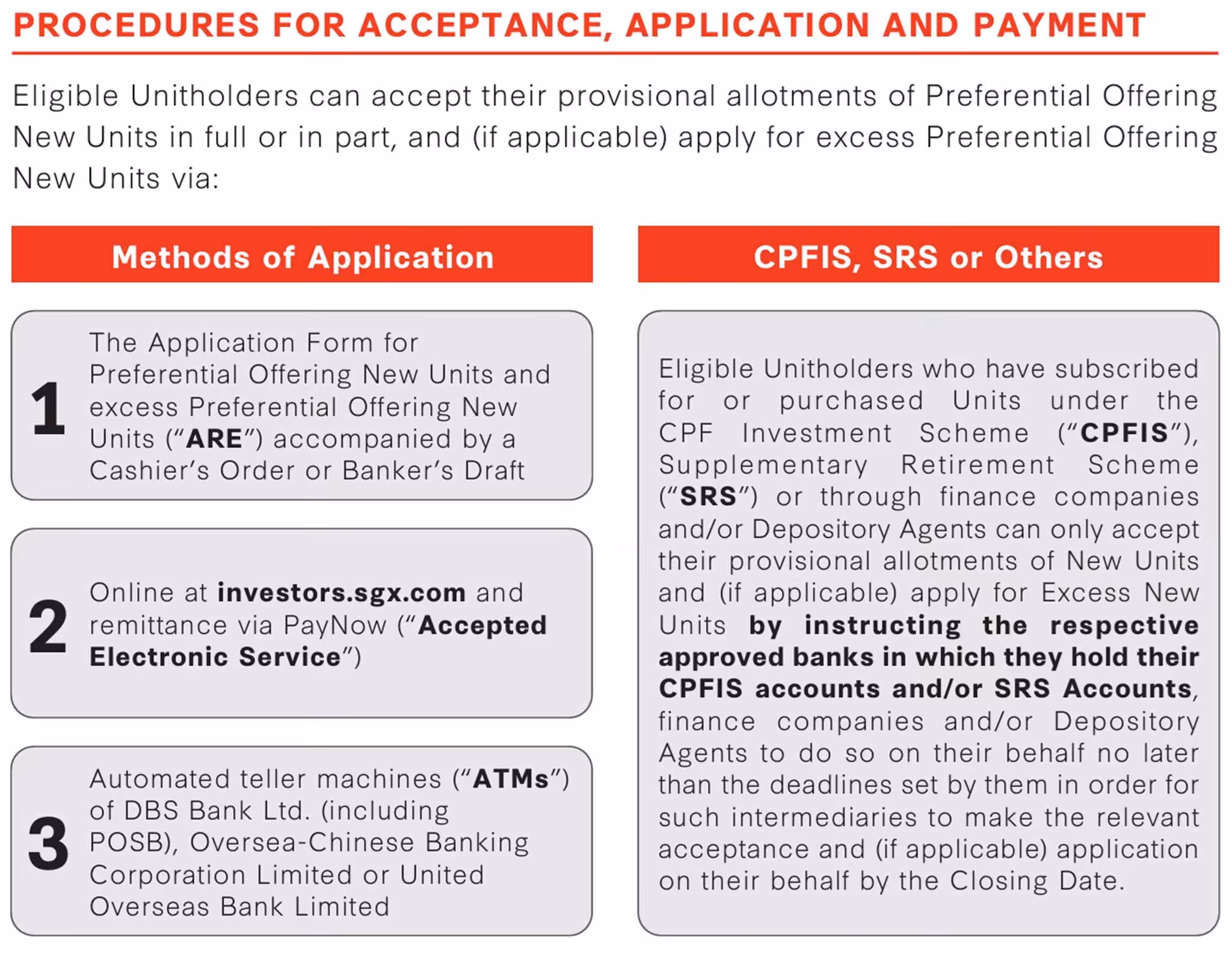 As per the screenshot I shared above, there are 3 ways you can accept the preferential offering units. You can either submit the application form accompanied by a cashier’s order or banker’s draft or accept online via Singapore Stock Exchange website. The last method is to apply via Automated Teller Machines (“ATM”) available island wide. For me, I always apply via Singapore Stock Exchange website.