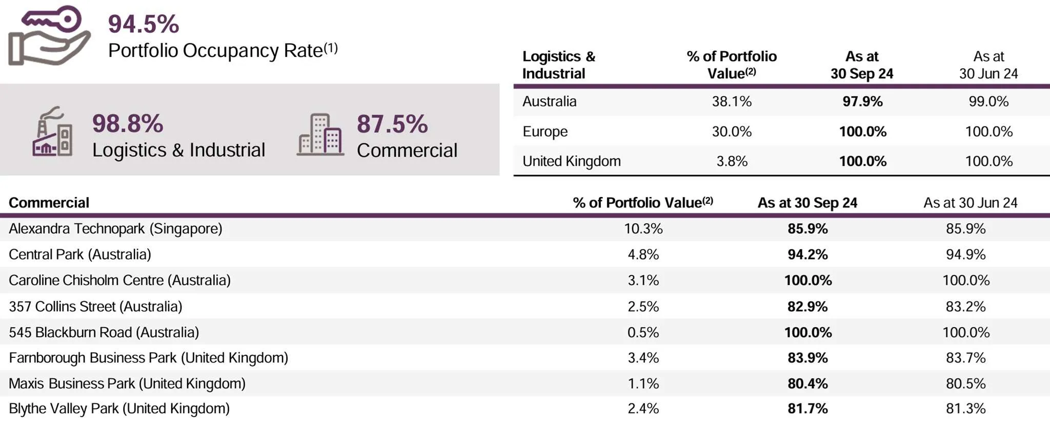 - Healthy occupancy at 94.5%.