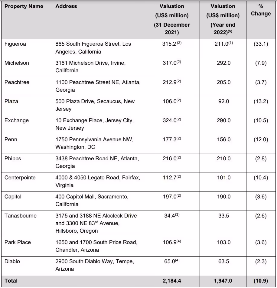 On 30th December 2022, the worst news came whereby the real estate valuation of the portfolio of Manulife US REIT (based on the year end 2022 valuations) has declined by 10.9% or US$237.4 million to US$1,947.0 million (versus US$2,184.4 million as at 31 December 2021).
