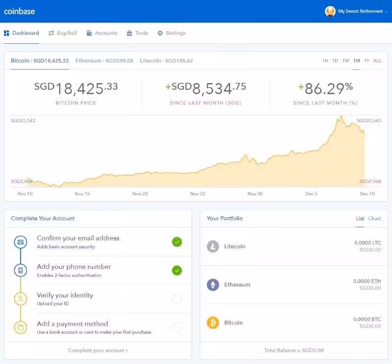 That’s it, you are ready to jump onto the cryptocurrency wagon! If you sign up via my referral link (Coinbase), you and me will get SGD13 of free bitcoin!