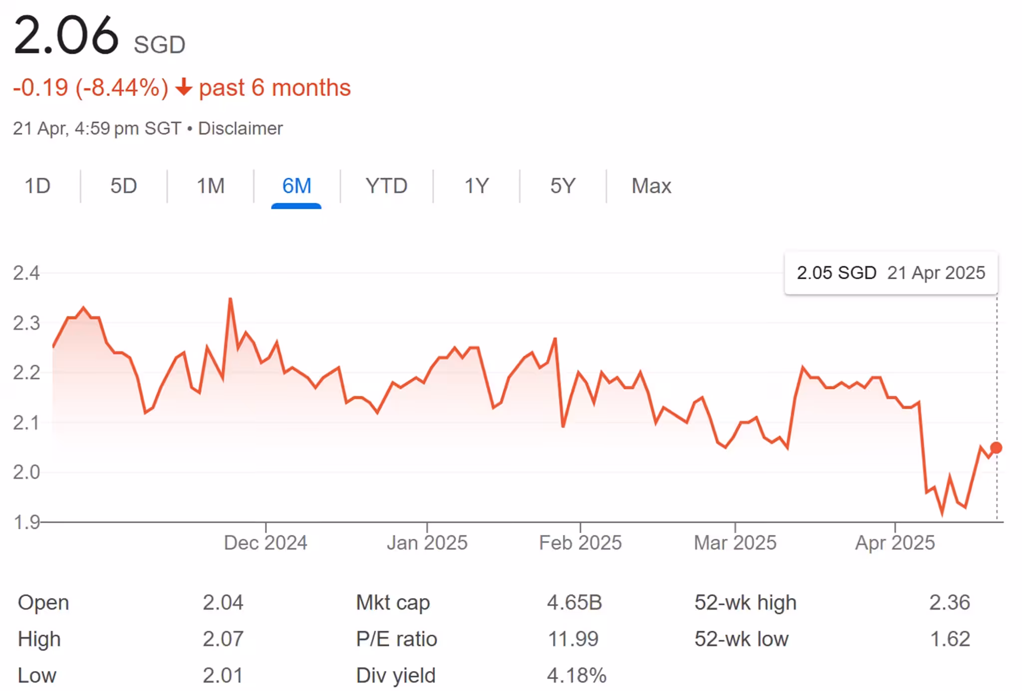 - Low current dividend yield of 4.61% based on S$2.05 per unit.