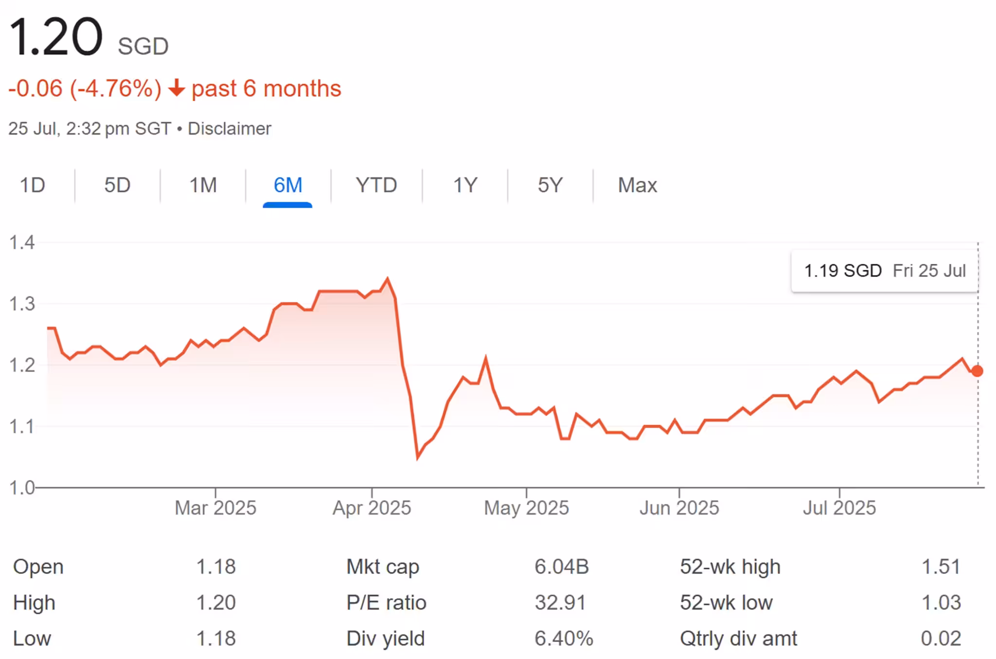 As you can see from the above 6-months price chart, Mapletree Logistics Trust share price has been creeping up slowly since April 2025. Based on the research by various analysts, Mapletree Logistics Trust has a target price of S$1.483.