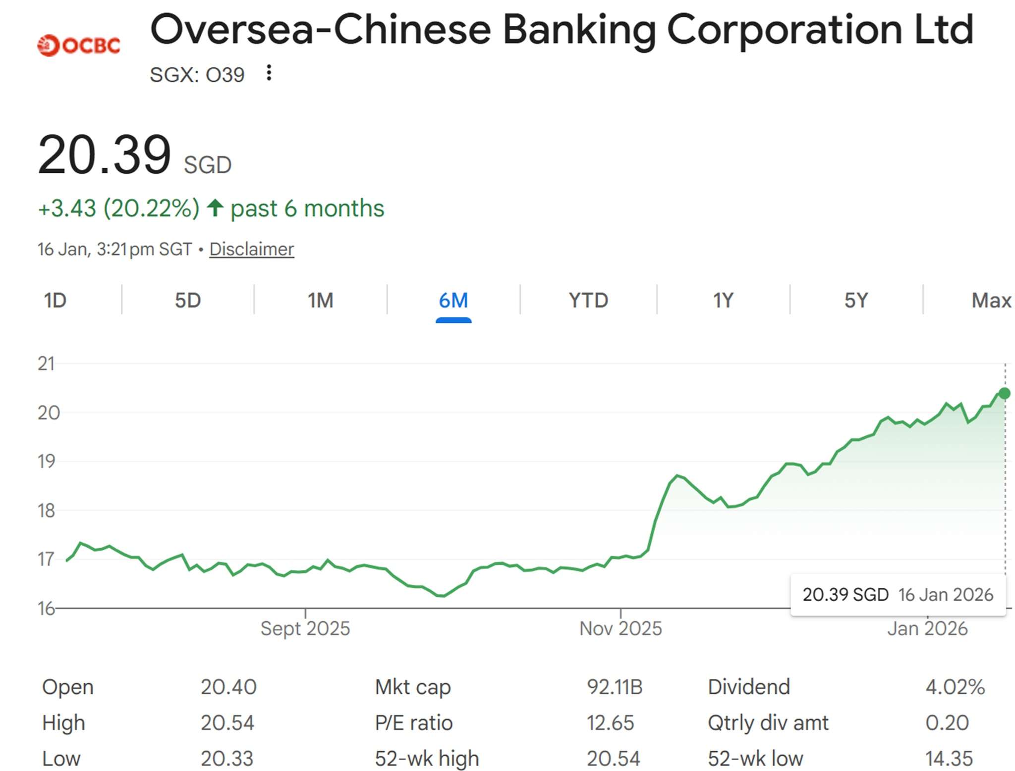 OCBC’s move above S$20 is therefore best understood not as a speculative surge, but as the result of steady financial performance, supportive sector trends, and investor positioning ahead of expected dividend announcements. Whether the stock can sustain or extend these levels will depend on the bank’s upcoming full‑year results, the trajectory of global interest rates, and the strength of regional economic conditions.