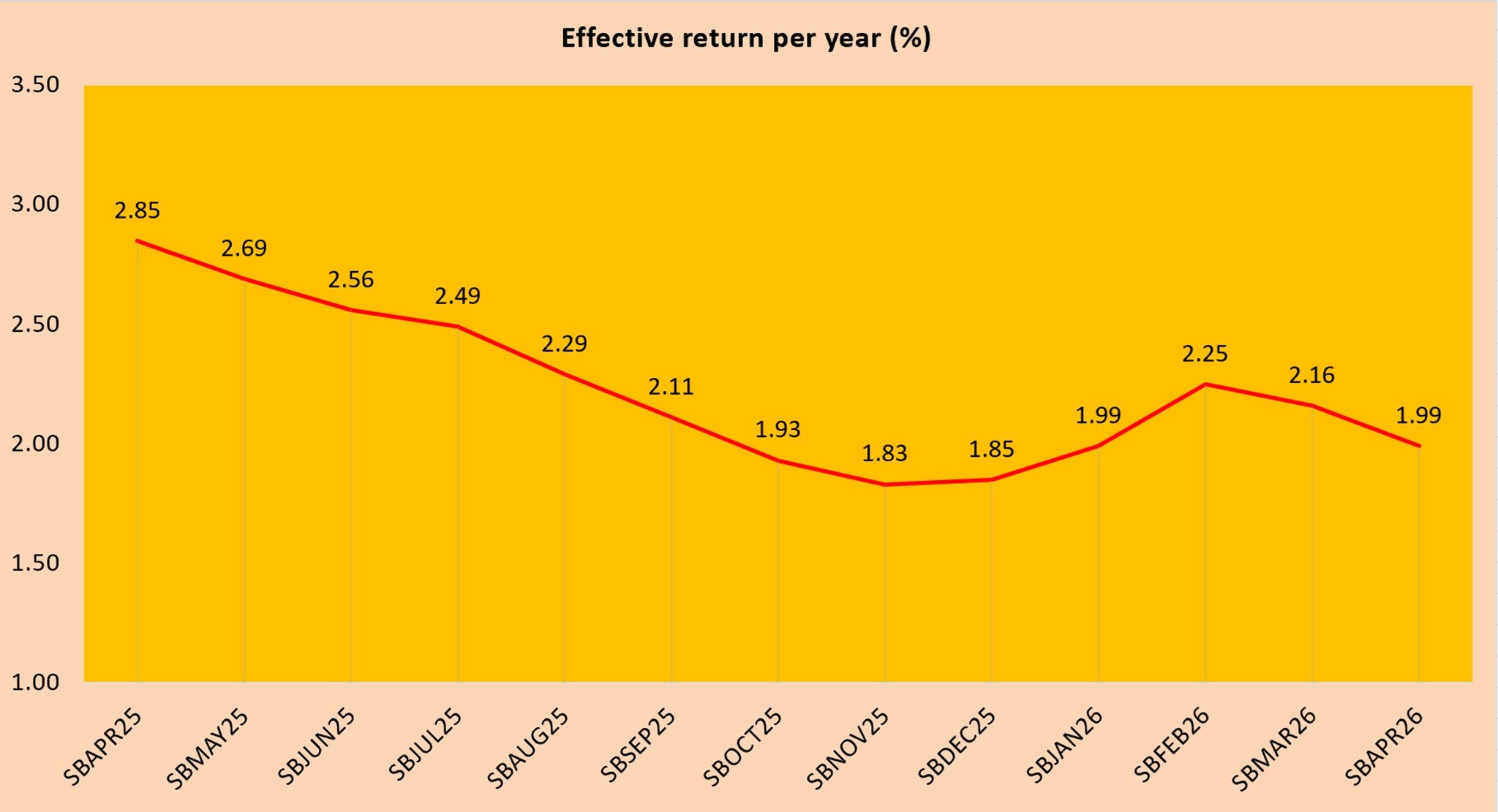 With some spare cash available, I see SBAPR26 (GX26040E) as a practical addition to my long‑term retirement portfolio. It allows me to lock in consistent returns while complementing my broader investment strategy, providing a disciplined and low‑maintenance way to grow my savings over time.
