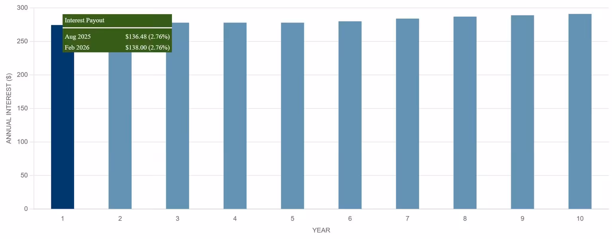 Below is the interest per year for SSB SBFEB25 GX25020H.
