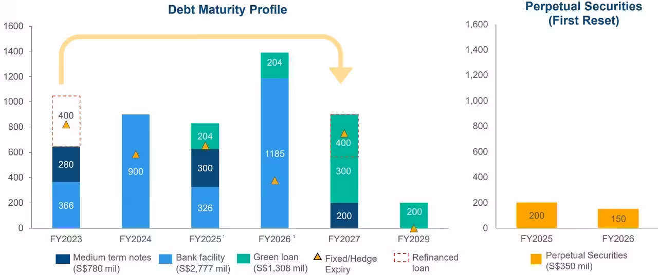 As shown in the chart below, Suntec REIT has refinanced S$400 mil loan with Sustainability-Linked Loan.