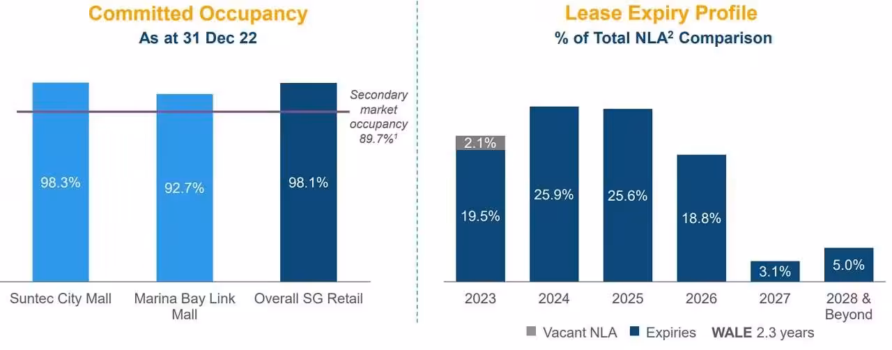 Singapore retail overall portfolio committed occupancy stood at 98.1%. Weighted Average Lease Expiry (WALE) stood at 2.3 years.