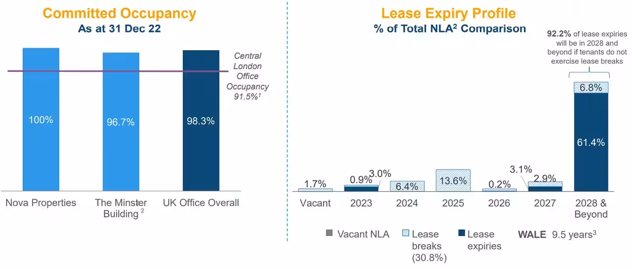 Suntec REIT’s UK portfolio has a rather long WALE of 9.5 years. The overall UK office occupancy stood at 98.3%. Unless the tenants break the lease, there is nothing to be concern about here.
