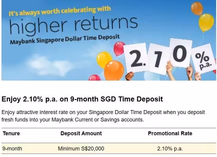 Interest Rate: 2.10%, Minimum Placement: S$20,000, Promotion Valid Until: Not stated