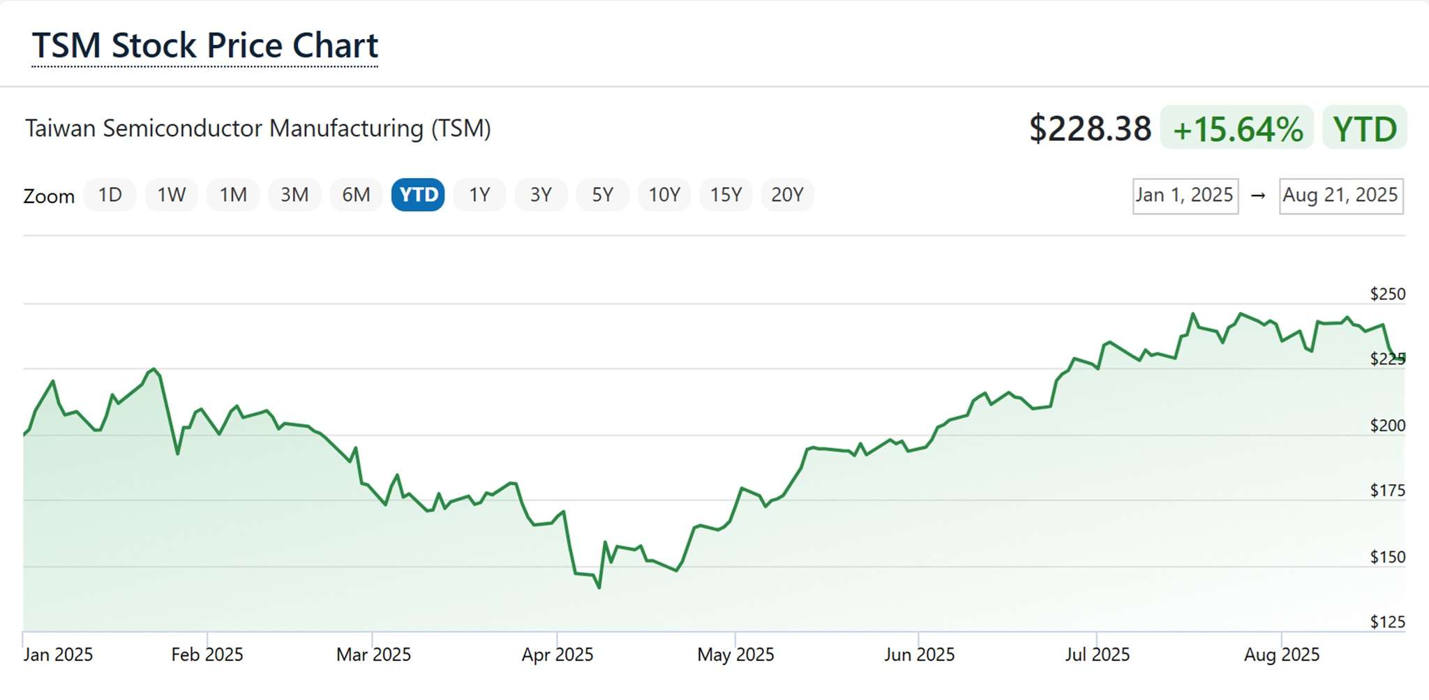TSMC (NYSE: TSM) makes up 11% of my US stock portfolio. As you can see from the above, TSMC share price had gone up by 15.64% YTD (Year-To-Date).